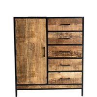 Mango Wood Dresser with Iron Frame Multi-Drawers Sturdy Design for Home and Hotel Organization