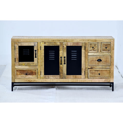 Industrial Mango Wood TV Cabinet with Metal Accents Designed for Durability and Storage in Modern Spaces