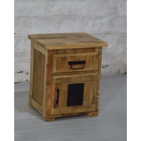 Rustic Mango Wood and Metal Bedside Cabinet Compact Storage Table for Living Room or Bedroom
