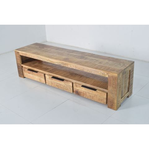 Rustic Mango Wood TV Cabinet with Four Drawers for Stylish Living Rooms and Hotel Interiors